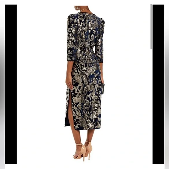 Rachel Zoe Navy Velvet Gold Sequin-Embellished Midi Dress NEW w/tags $425 retail