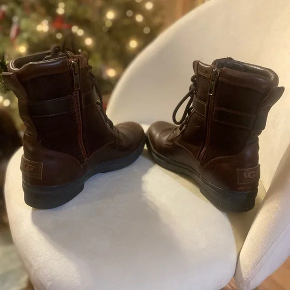 Boots run small across the toe box, just FYICrafted from waterproof leather with seam-sealed construction, the Kesey is a versatile lace-up boot with a vintage look, zip entry, and soft wool lining. The sole is made of Spider Rubber, offering superior traction in wet and dry conditions. Pair yours with nearly any outfit, from denim to dresses. This product was made in a factory that supports women in our supply chain with the help of HERproject, a collaborative initiative that creates partnerships with brands like ours to empower and educate women in the workplace.Item No. 1005264Waterproof FeaturesSeam-sealed constructionWaterproof leatherWater repellent materialsGusseted zipper with water repellent tape and coatingsGusseted tongue with water repellent coatingPolyester laces7mm UGGpure™ wool lining7mm UGGpure™ wool insoleSpider Rubber® outsole for traction7" shaft heightEmbossed UGG® logo on heelBest for: Light or moderate rain, Light snowRN 88276